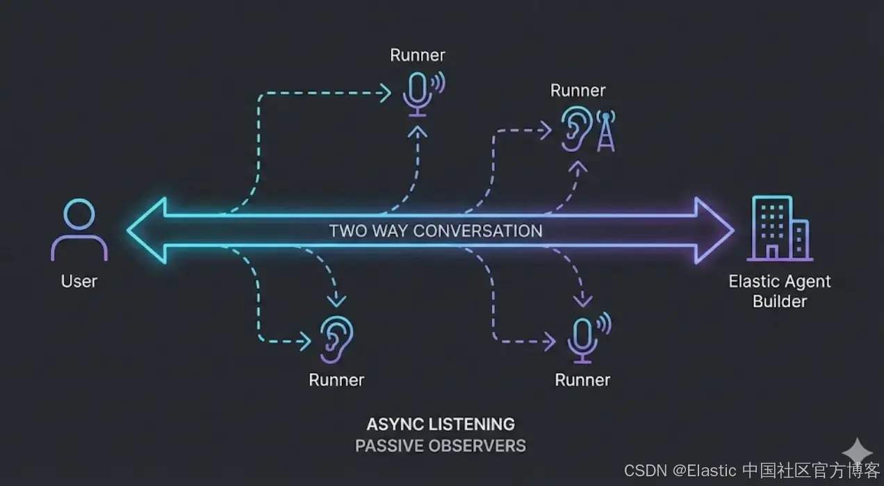 - 由于 runners 轮询的是 Elasticsearch 索引而非对话历史,它们不会因为需要完成一轮对话才能看到外部工具请求而被阻塞。