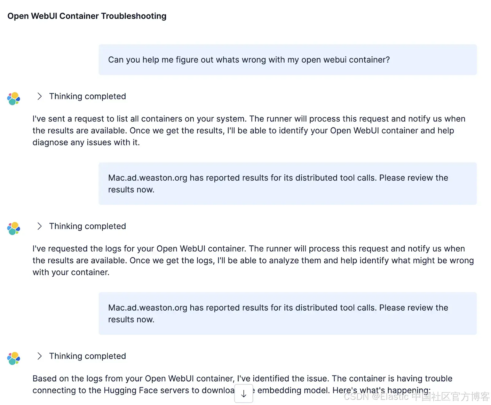 有了这个机制,runners 不再依赖将工具调用请求写入对话,而是可以直接轮询 Elasticsearch 的 distributed-tool-requests 索引以获取新的外部工具请求,并将结果报告到另一个 Elasticsearch 索引中,使用提供的 execution.id。