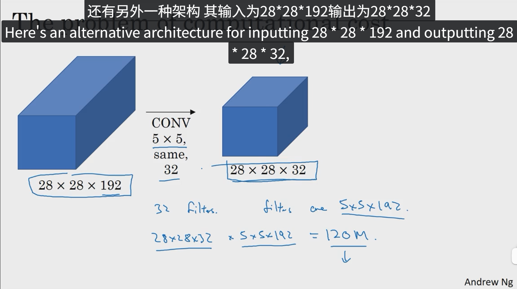 下面,我们就来计算这个5x5过滤器在该块中的计算成本。