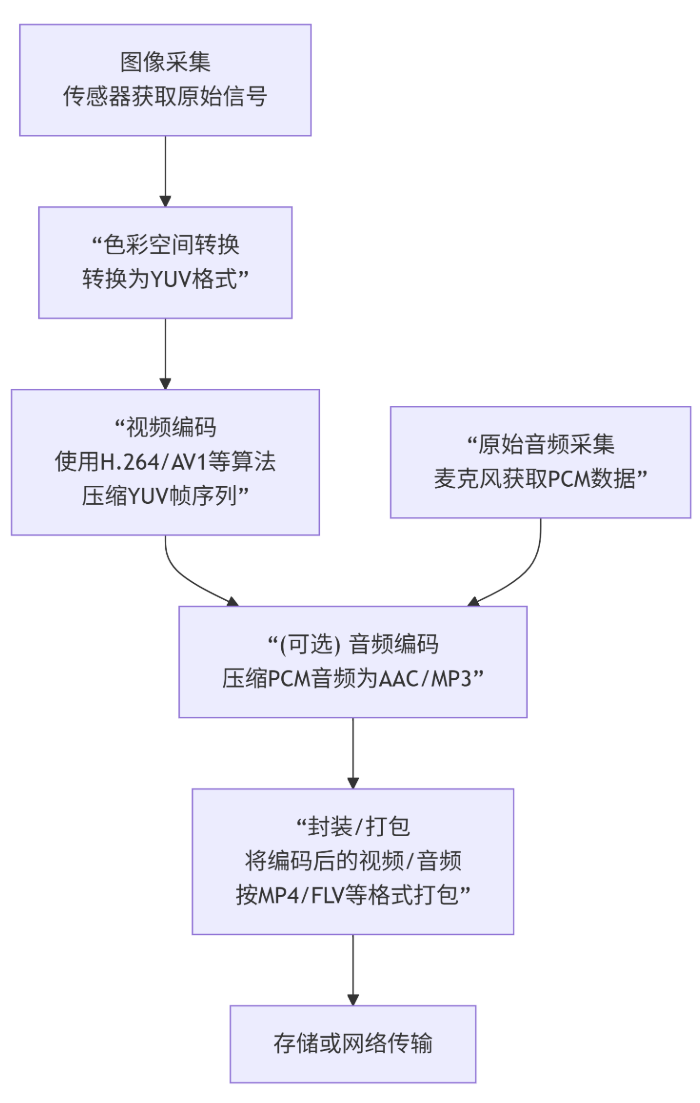 采集 (NV12/YUV) → [可选:转换为BGR进行处理] → [处理后再转回NV12] → 编码 (H.264/H.265等) → 传输/存储
