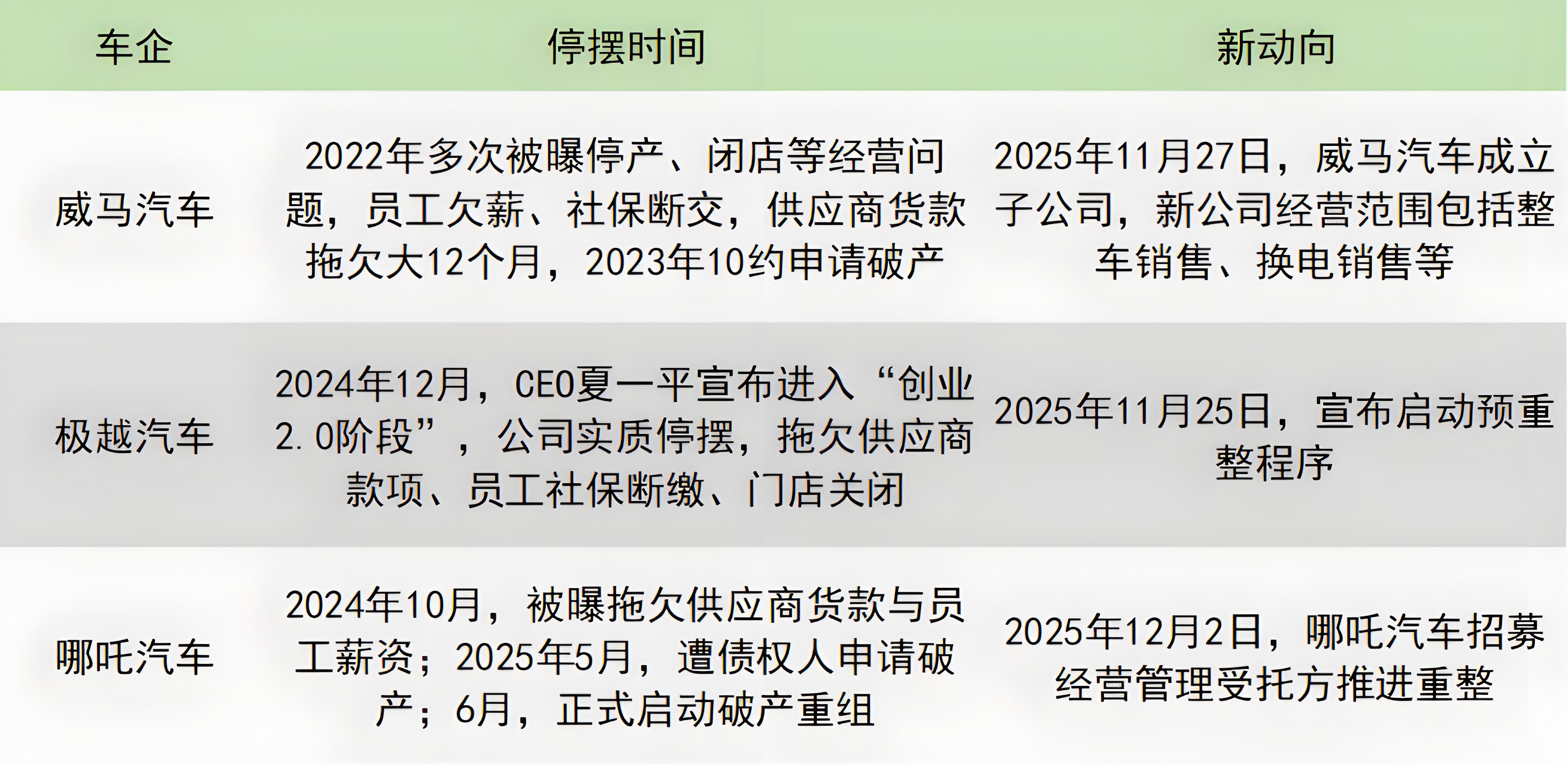 此外,威马、极越、哪吒等陷入困境的车企,还没彻底退场,正在积极通过重整、成立新公司等方式寻求"重生"。