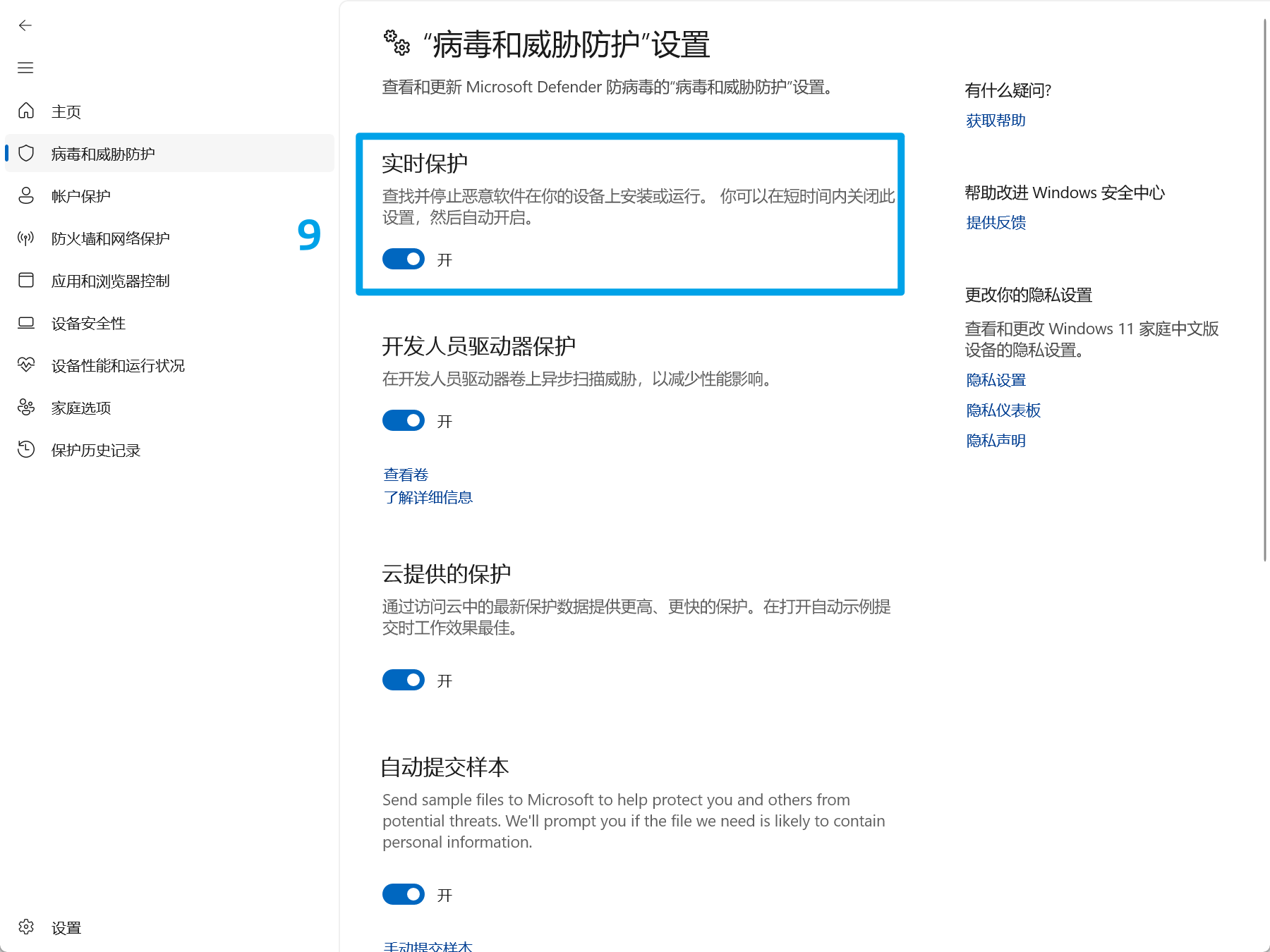6.关闭"实时保护"