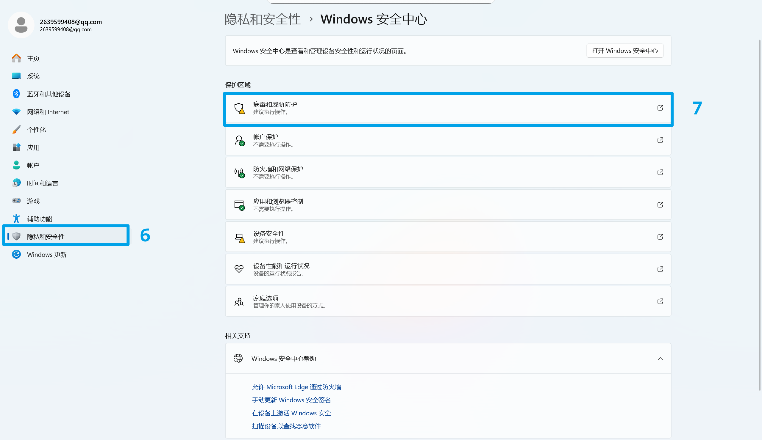 - 后三步是在电脑安全中心进行设置