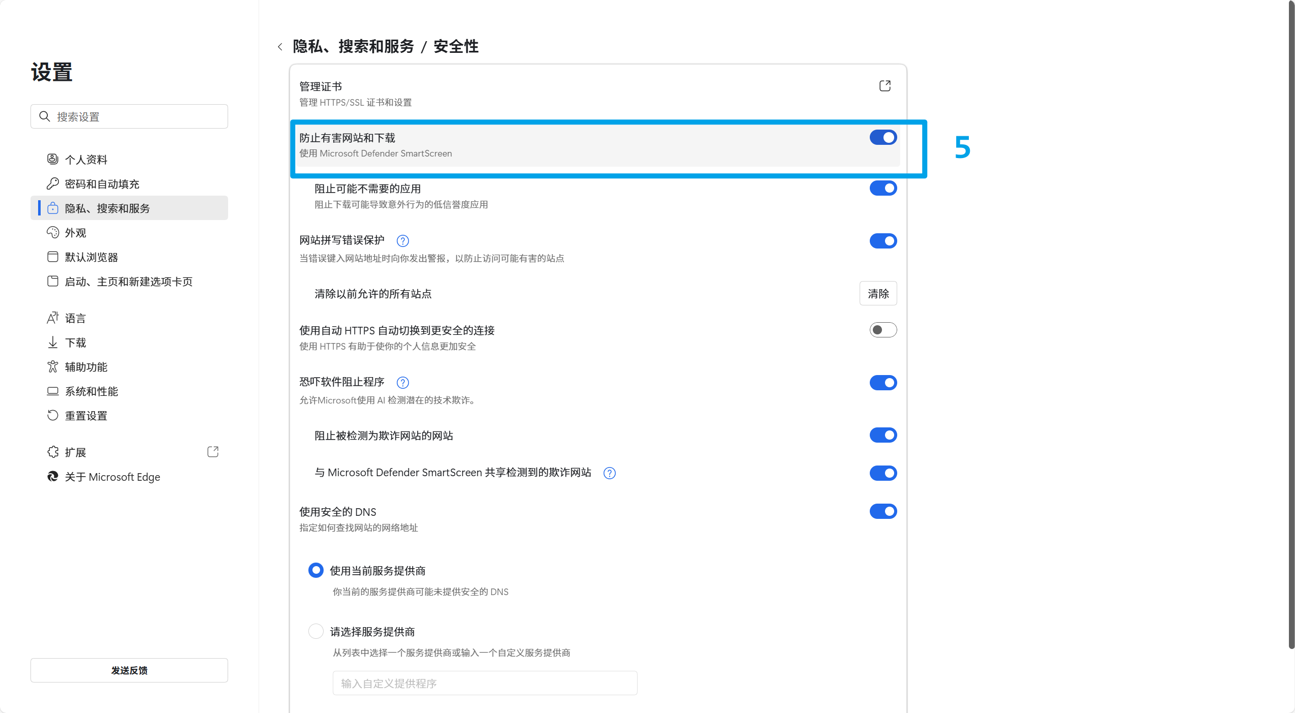 3.将"防止有害网站和下载"关闭