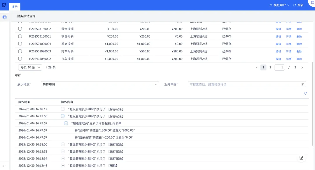 在企业数字化办公场景中,系统审计功能是守护核心数据安全与合规的 "隐形卫士"。简单来说,它就像系统的 "全程记录仪",能全面、真实、不可篡改地捕捉并存储用户的新建、编辑、修改、 删除数据等操作,形成完整审计日志。