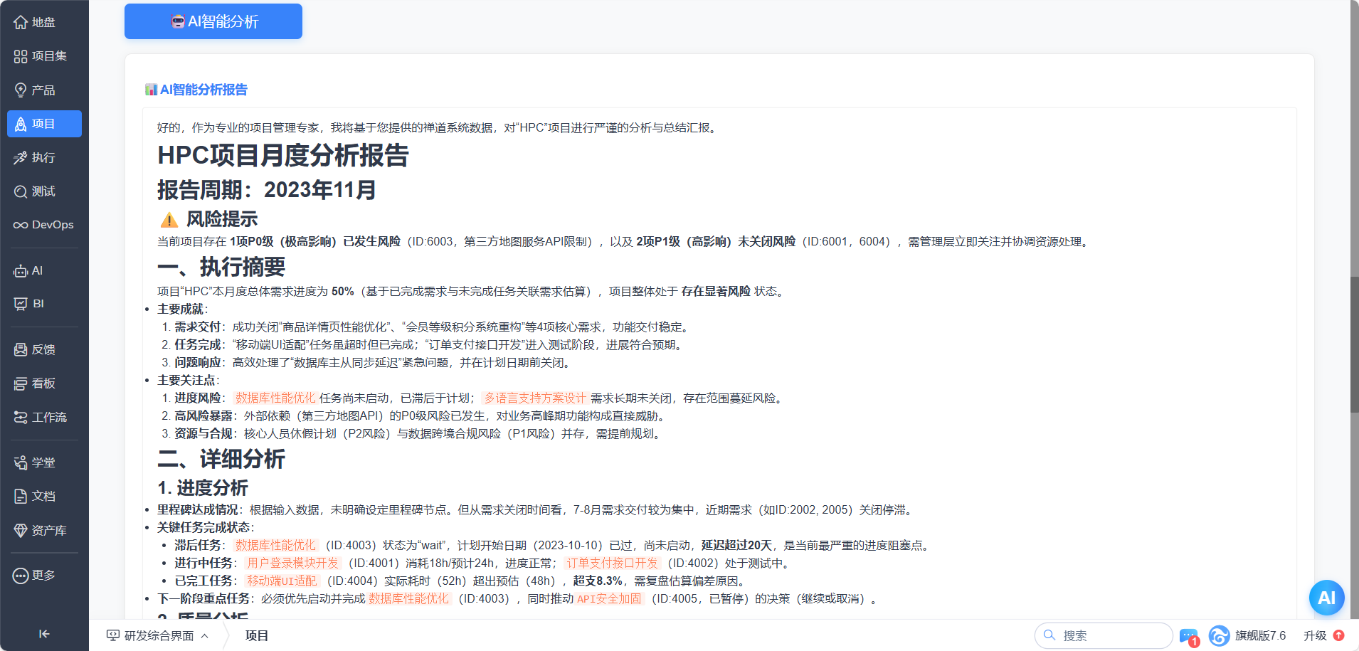一键智能分析:项目经理点击按钮即可获得深度分析