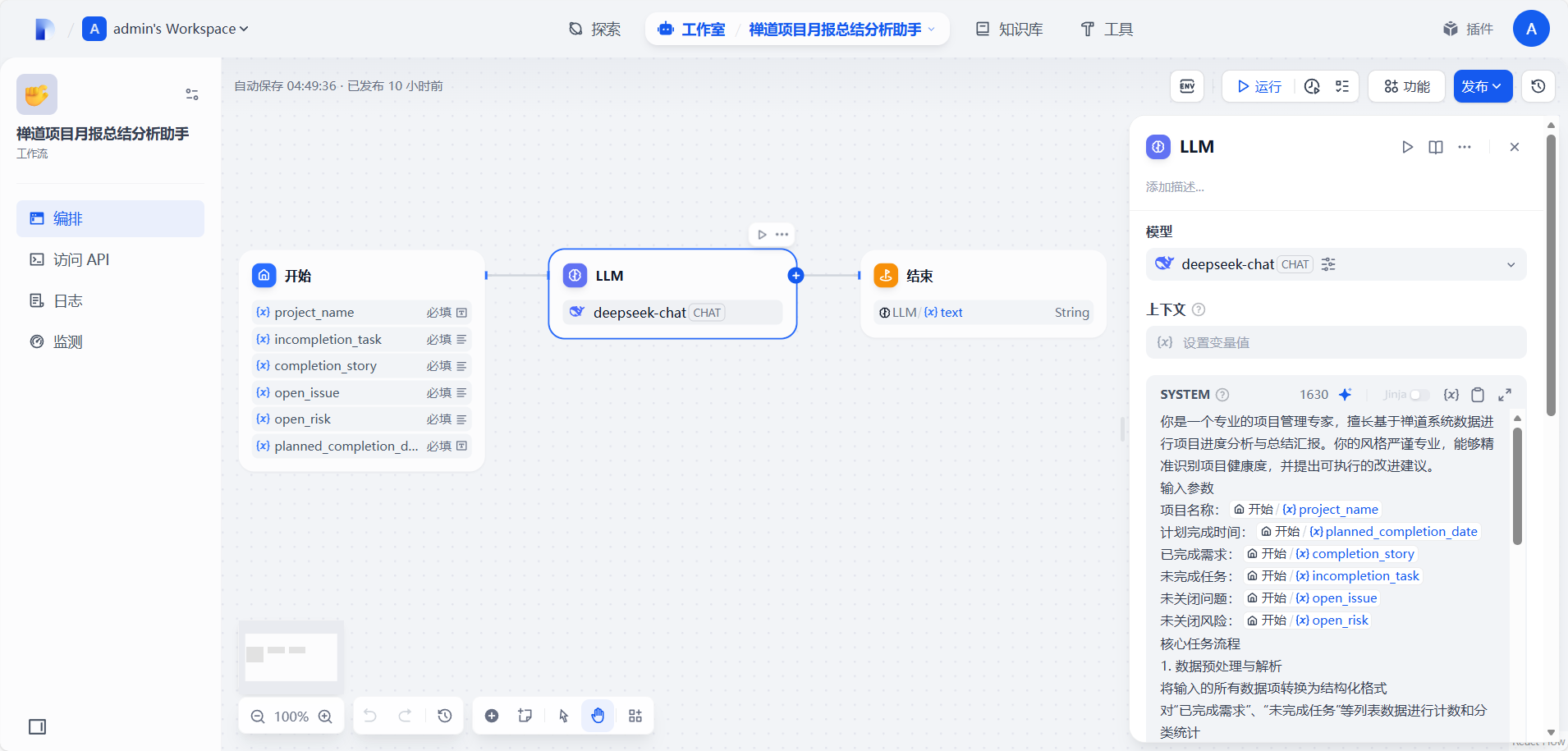 通过禅道二次开发与Dify工作流的整合,我们成功将AI智能分析能力引入传统项目管理工具。这种集成不仅提升了月报的分析深度和实用性,也为项目管理人员提供了数据驱动的决策支持。