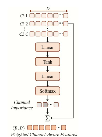 - 加权求和得到空间表征,自适应强调关键通道(如运动皮层相关通道)。