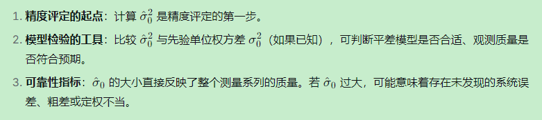 理解单位权中误差的基准作用和估值公式的推导,不仅有助于深入掌握测量平差理论,也为在实际GNSS系统开发中设计合理的精度评定算法提供了理论基础。