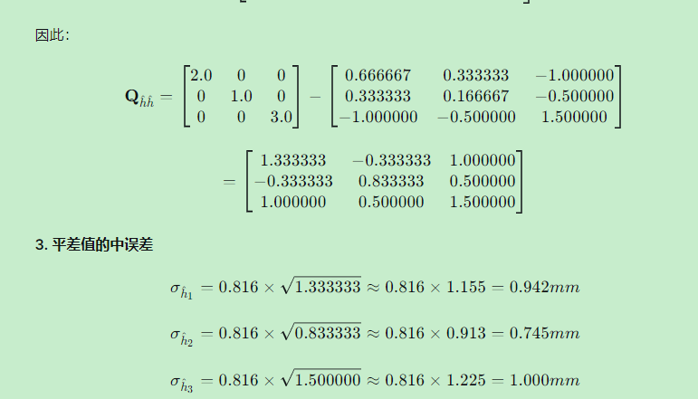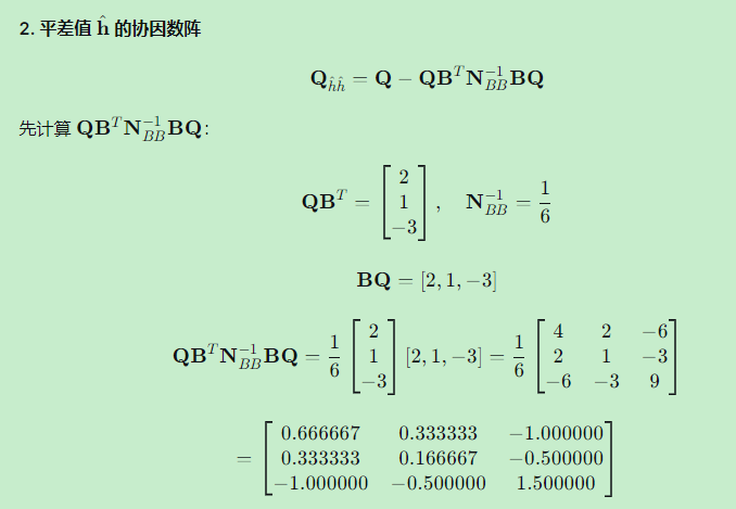 2. 平差值 \hat{\mathbf{h}}h^ 的协因数阵