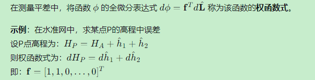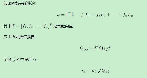 在实际应用中,我们关心的往往不是单个观测量的平差值,而是它们的函数,例如: