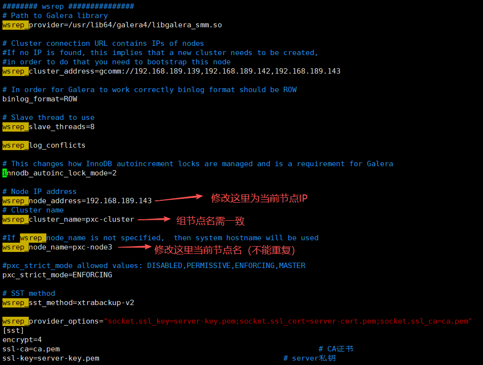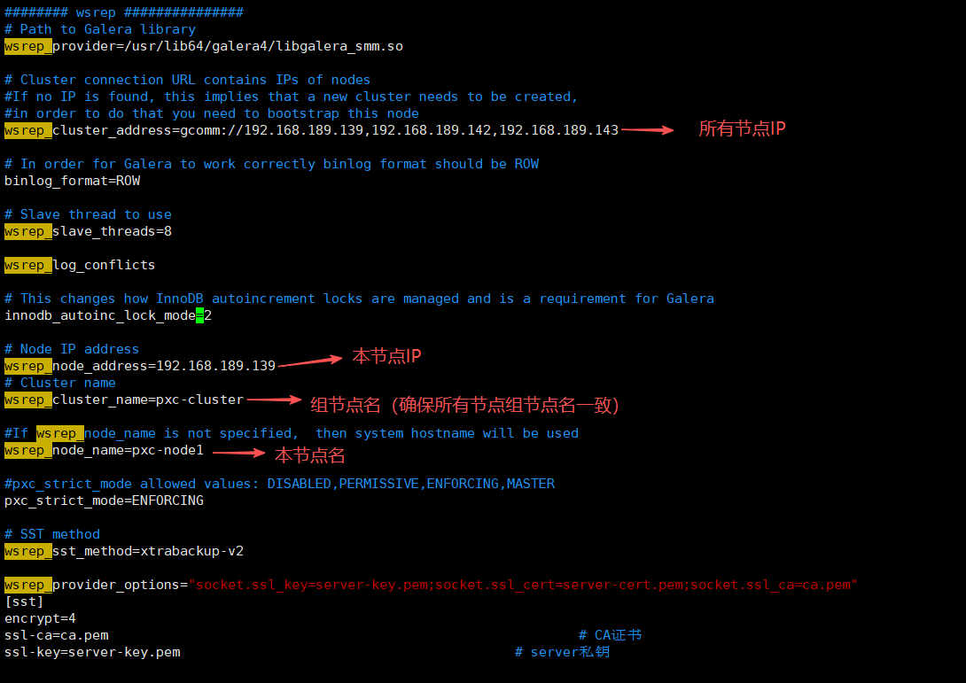 wsrep_node_name=pxc-node1 -节点名,每个节点不一致