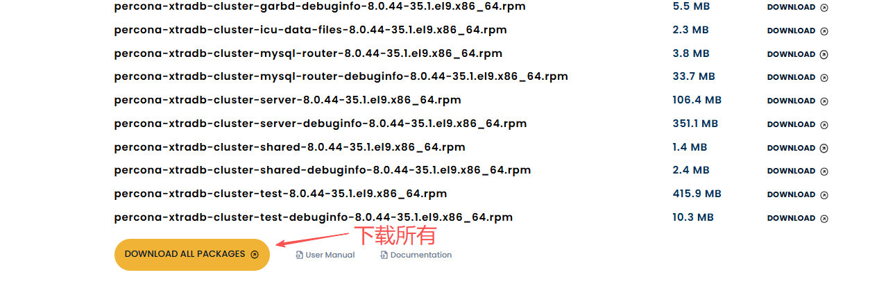 tar -xvf Percona-XtraDB-Cluster-8.0.44-r7284a5c-el9-x86_64-bundle.tar -C per