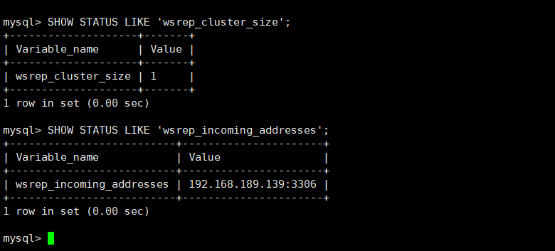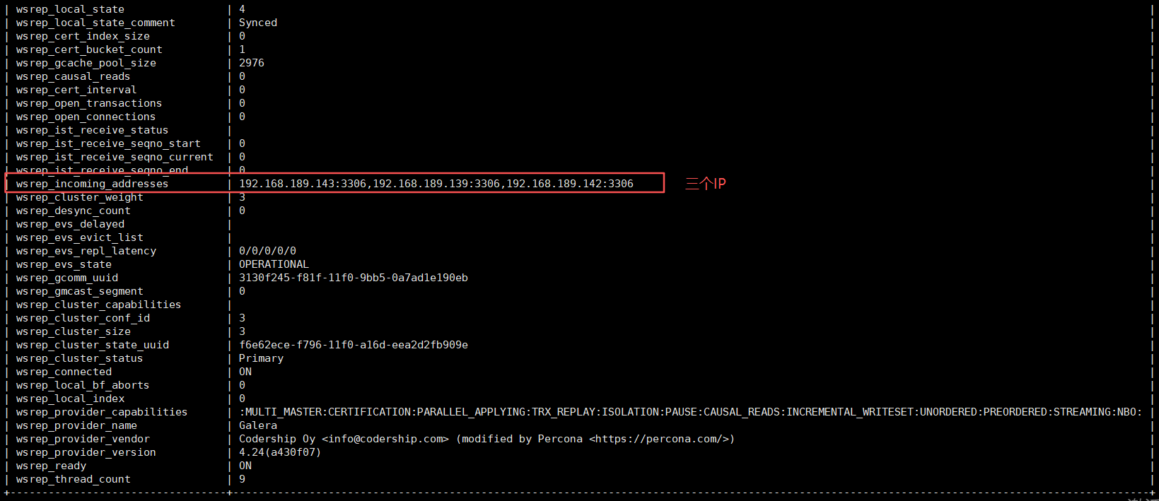 SHOW STATUS LIKE 'wsrep_incoming_addresses';