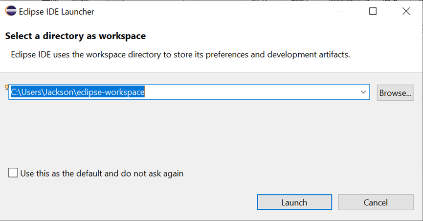 选择一个目录作为工作区(workspace),按照默认目录,点击Launch启动。
