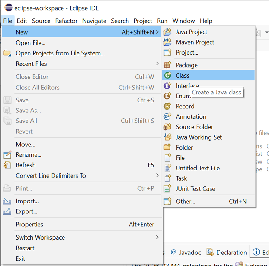 选择File菜单 > New > Class,创建一个类。