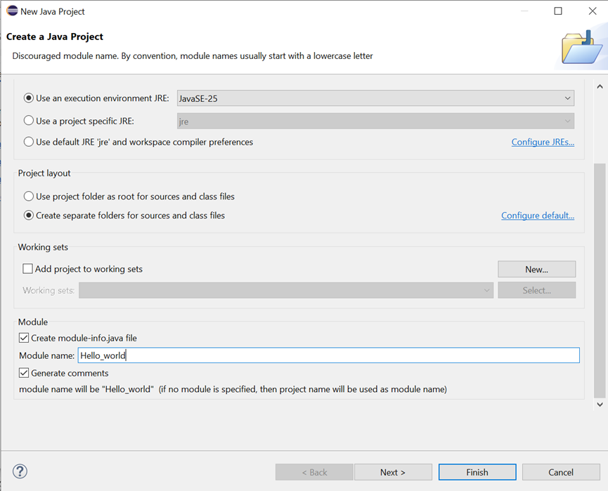 填写Module name(模块名称),点击Finish完成配置。