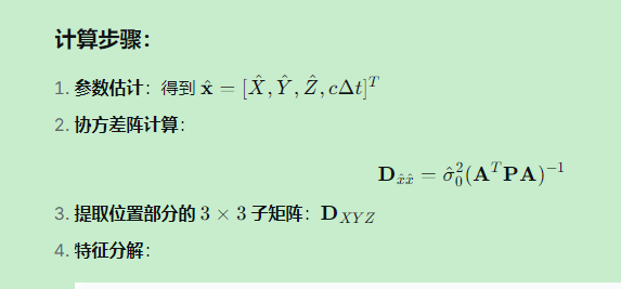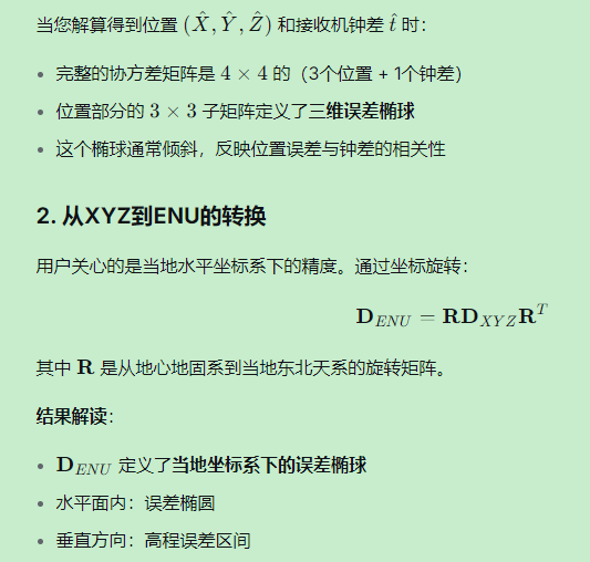 - 例如:接收机钟差误差与高程误差强相关,导致椭球在Z-Δt平面倾斜