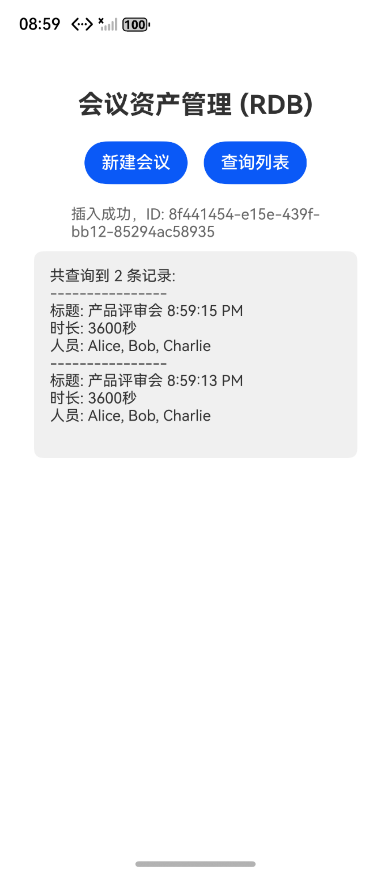 this.message = `插入成功,ID: ${meetingId}`;