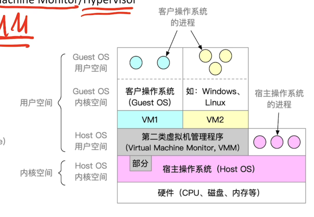 第二类虚拟机管理程序:运行在宿主操作系统上