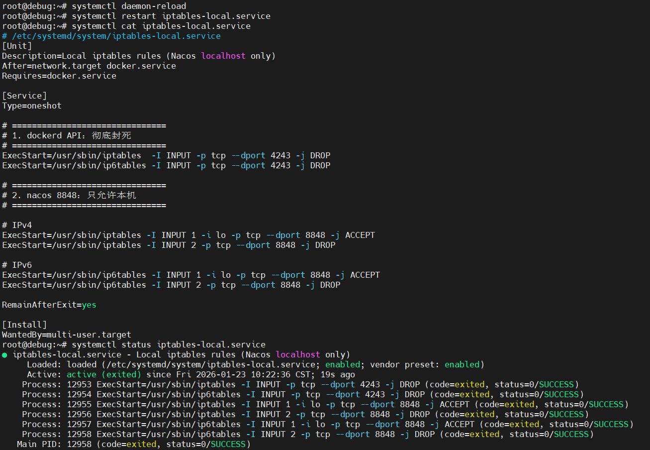 ExecStart=/usr/sbin/ip6tables -I INPUT 1 -i lo -p tcp --dport 8848 -j ACCEPT