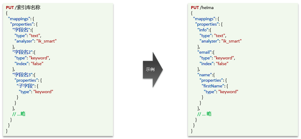 索引库和mapping一旦创建无法修改,但是可以添加新的字段,语法如下: