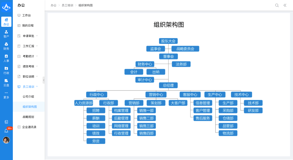 功能页面操作路径:办公 > 员工培训 > 组织架构图