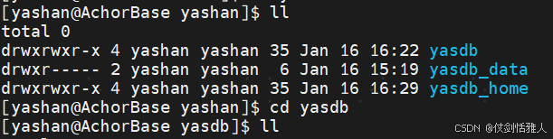 - "ll"用于以长格式列出目录中的文件和子目录信息,包括权限、所有者、大小、修改时间等元数据。