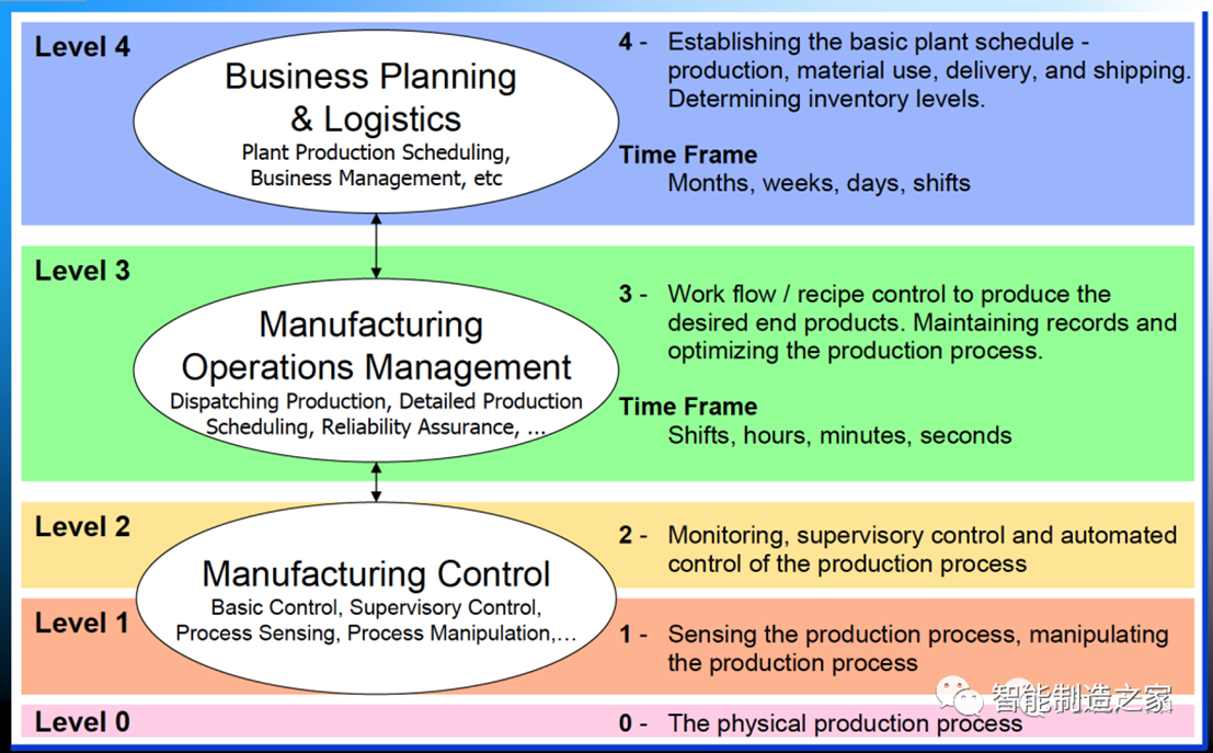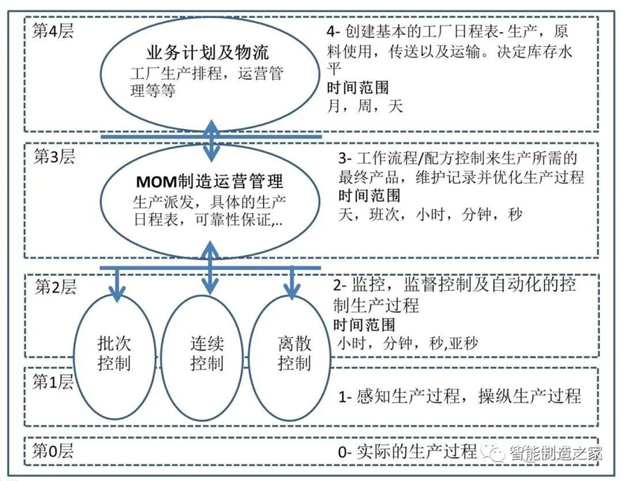 IEC/ISO 62264标准对制造运行管理的定义是:通过协调管理企业的人员、设备、物料和能源等资源,把原材料或零件转化为产品的活动。它包含管理那些由物理设备、人和信息系统来执行的行为,并涵盖了管理有关调度、产能、产品定义、历史信息、生产装置信息,以及与相关的资源状况信息的活动。