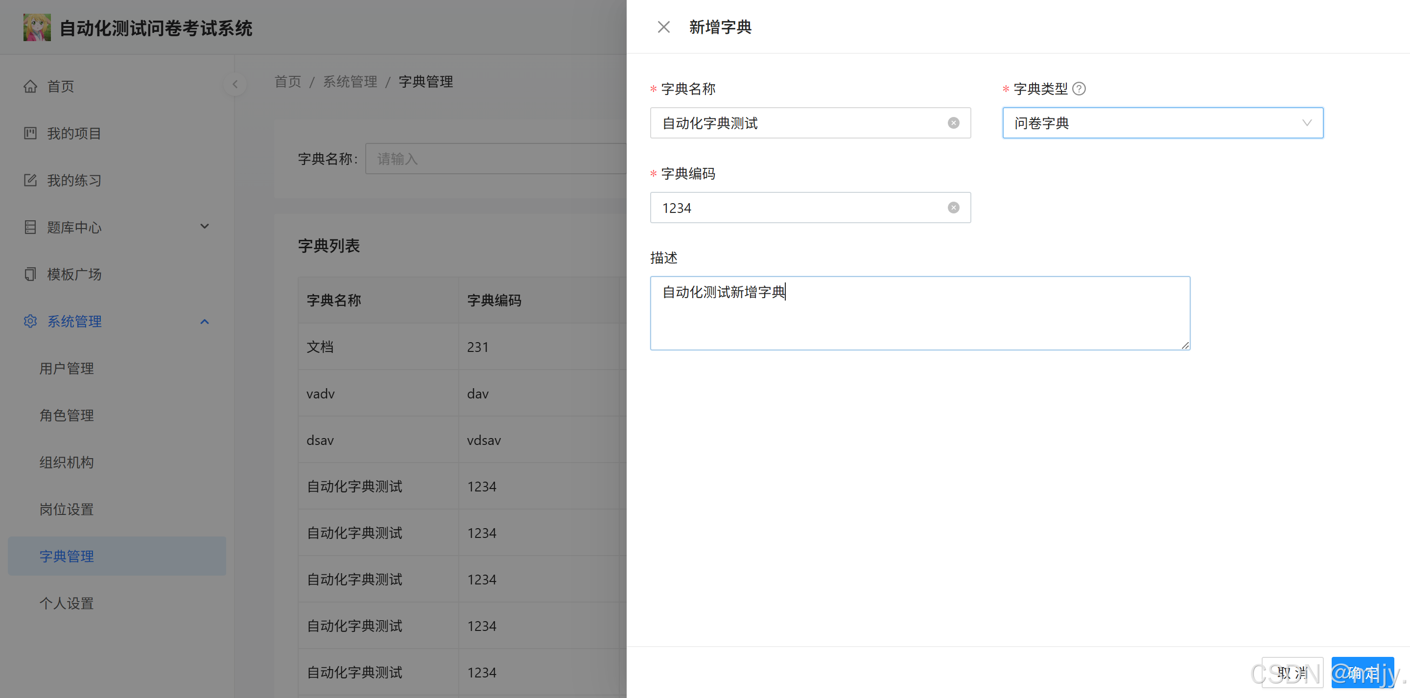 self.driver.find_element(By.CSS_SELECTOR, "#name").send_keys("自动化字典测试")