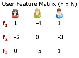 :用户-隐含因子矩阵(代表用户对各隐类别的喜好)。