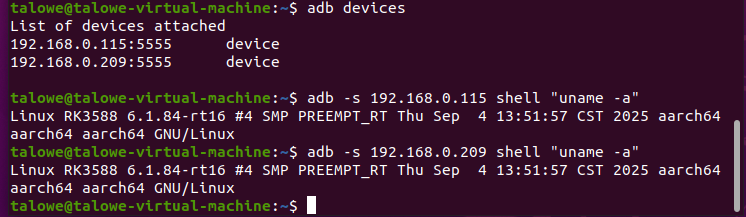 adb connect 192.168.0.209 # 瑞芯微RK3588有线IP示例