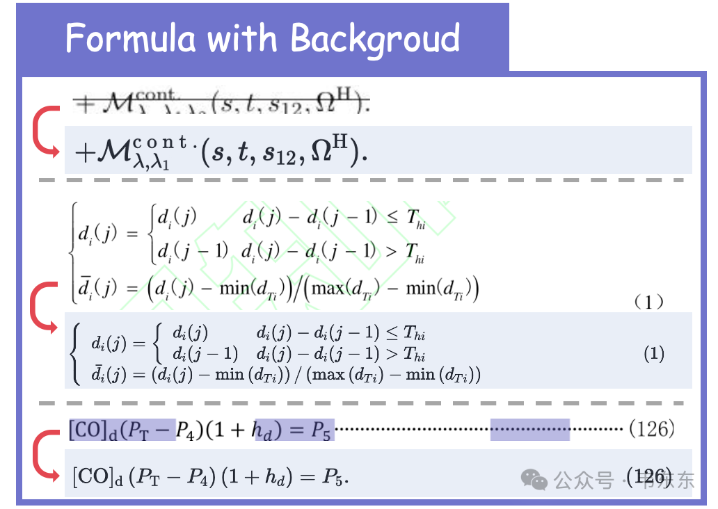 首先看下复杂的数学公式解析效果,传统方案很容易出现符号遗漏或者结构错乱,MinerU2.5 最新版本能够比较准确识别长难公式,并输出 LaTeX 代码,直接渲染为完整公式。这点也算是小试牛刀了下。