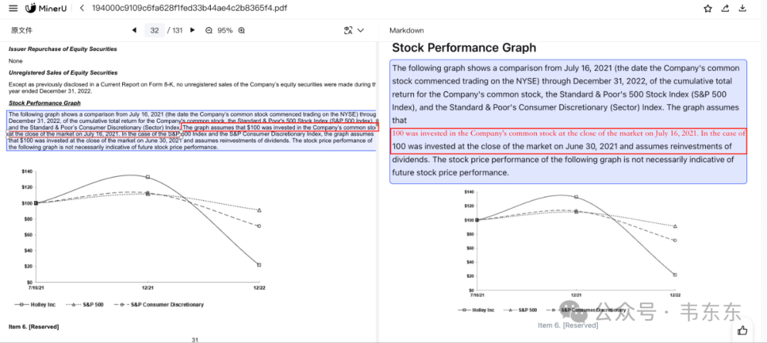 不过值得注意的是,在这个英文财报中对于一个比较简单的文本段落,MinerU2.5 丢失了其中的美元符号,并莫名的把字体变成了红色表示,这说明其微调数据中,独立的数字比"$+数字"的组合更常见,所以模型倾向于只输出数字。