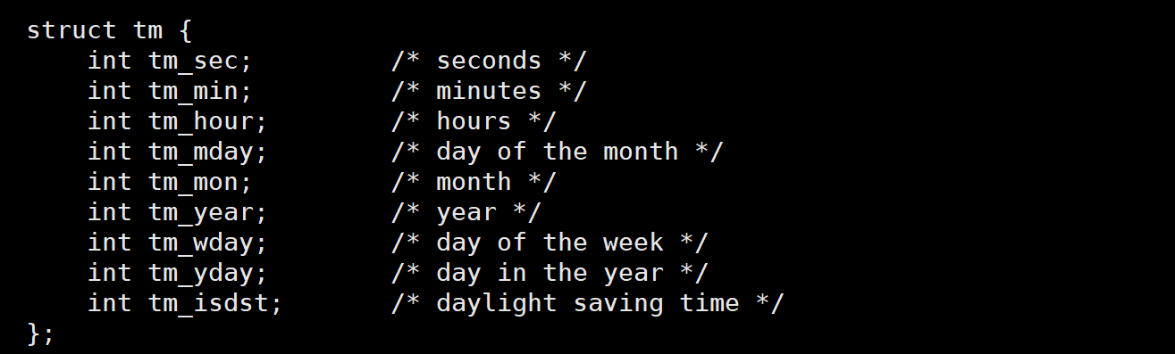 返回值:Linux内的一个内置结构体,包含各种时间信息(以1970-01-01 00:00:00 以来的秒数进行转换)