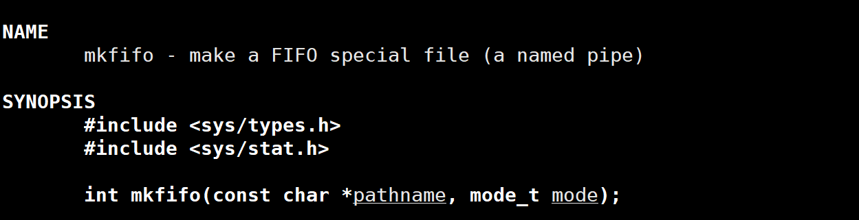 int n = mkfifo(FILE_FIFO, 0666);//FILE_FIFO 文件路径(宏)
