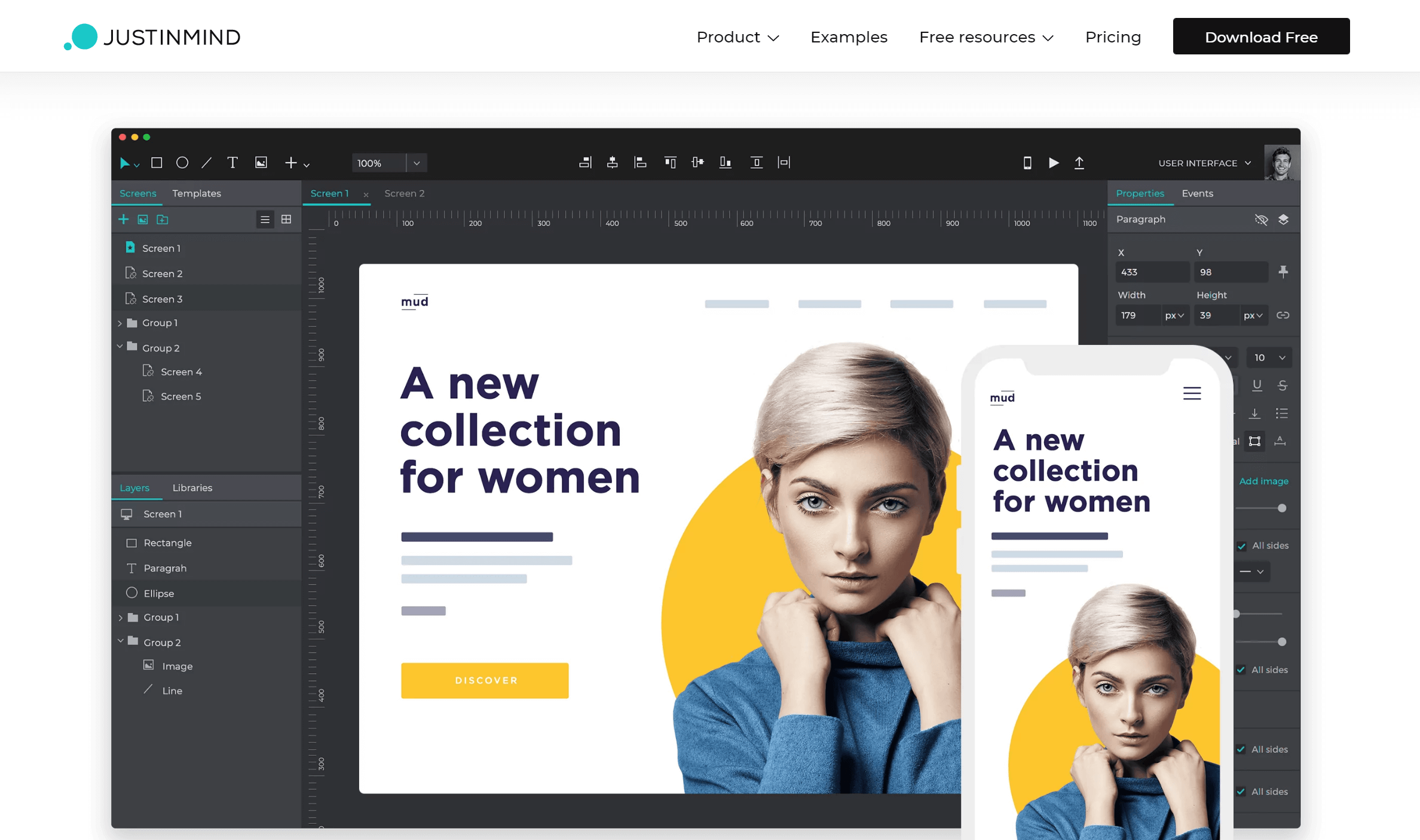 Justinmind是一款融合UI与UX设计的原型开发工具,专门适配网页和移动应用,其中线框图功能最为突出。它自带现成线框库,可在线框上测试移动手势,通过拖拽元素、快速验证想法的流畅流程,提升原型设计效率。