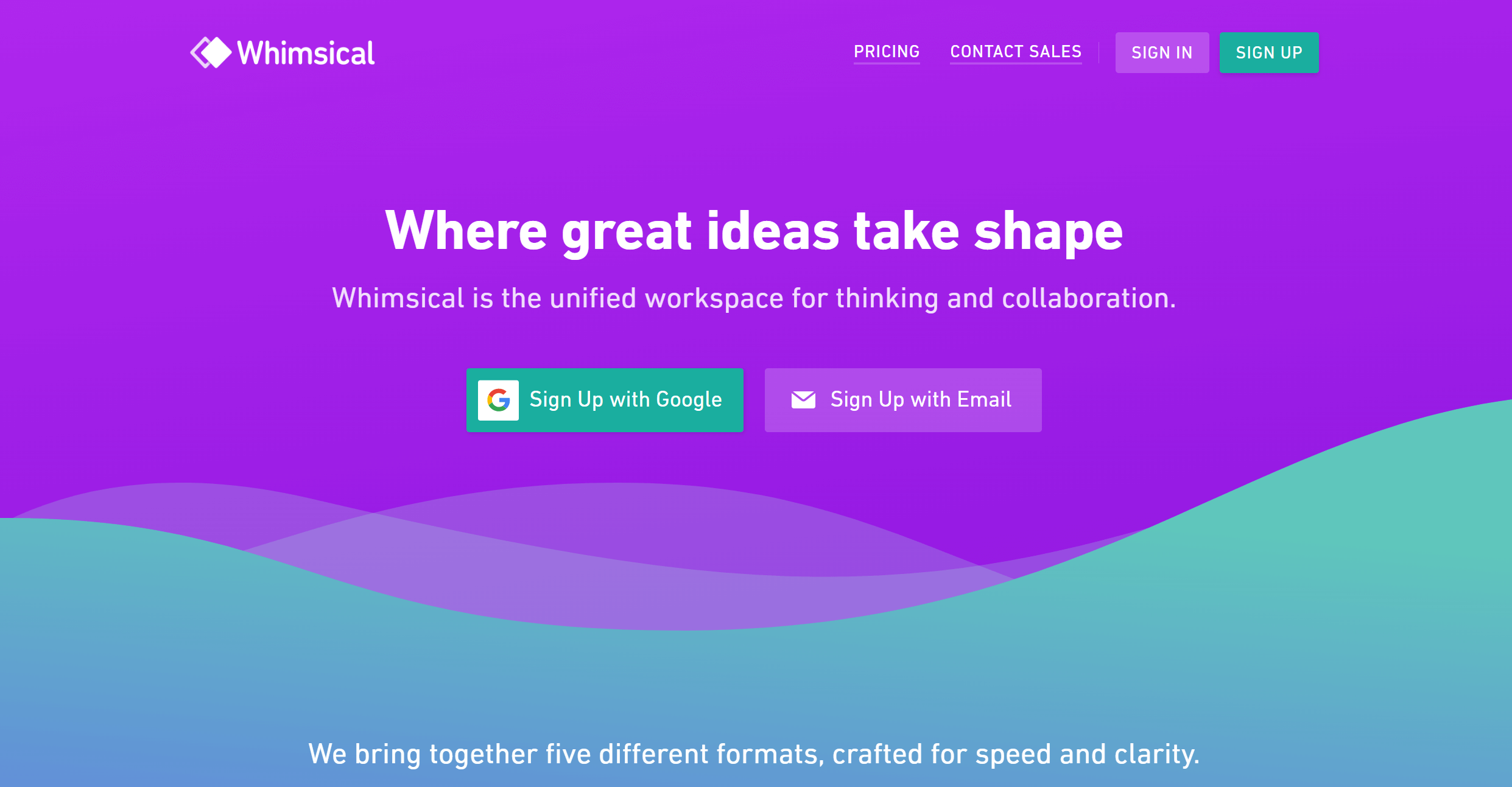 Whimsical是一款在线流程类UI设计工具,主要用于UI设计中的产品规格制定、创意构思和用户流程绘制。操作命令简单,界面简洁干净,无需安装客户端,只用浏览器就能随时随地开展绘制工作,对新手十分友好。