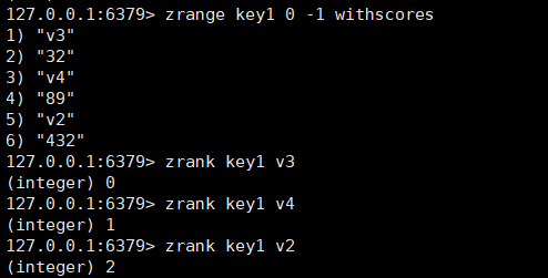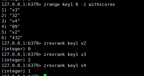 zrevrank:可以查询member的排名,和zrank相反,下标是从大到小算的。