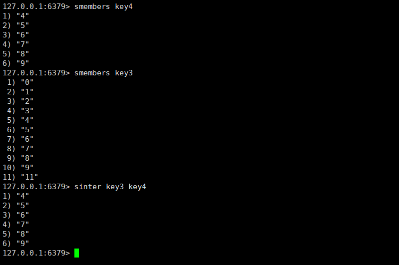 sinterstore:功能类似于sinter,但不再是以返回值的方式告诉我们了,而是可以存储到destination里。