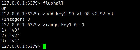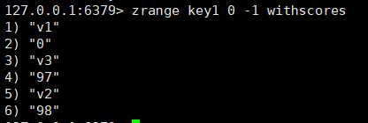 zrange:用于获取start和stop中间的元素,如果加上withscores选项,在展示元素的时候,元素的下一行就是元素的分数。