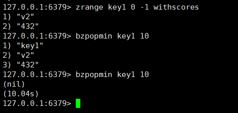bzpopmin :b表示阻塞,在阻塞集合为空的时候会阻塞,当其中某个key里有元素的时候就会解除阻塞,或者在timeout时间以后会自动解除阻塞,timeout的单位是秒,支持小数。