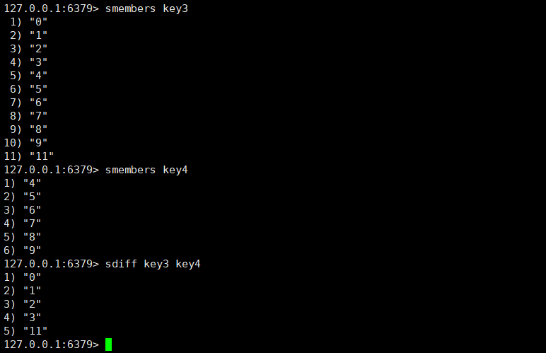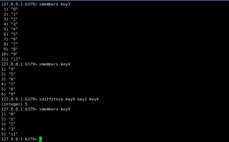 sdiffstore:功能类似于sdiff,但不再是以返回值的方式告诉我们了,而是可以存储到destination里。