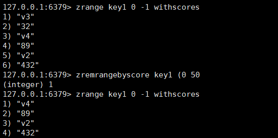 zrangebycore:用于根据分数删除指定区间的member,start和stop是闭区间,可以使用括号来排除边界值的。