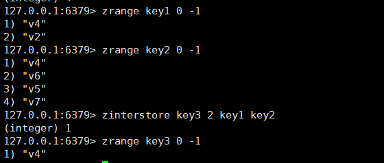 zinterstore :用于求zset集合之间member的交集,把结果存储在destination里。