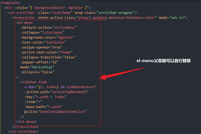 需要修改的的代码部分即为原始的:src\layout\components\Sidebar下index.vue组件,