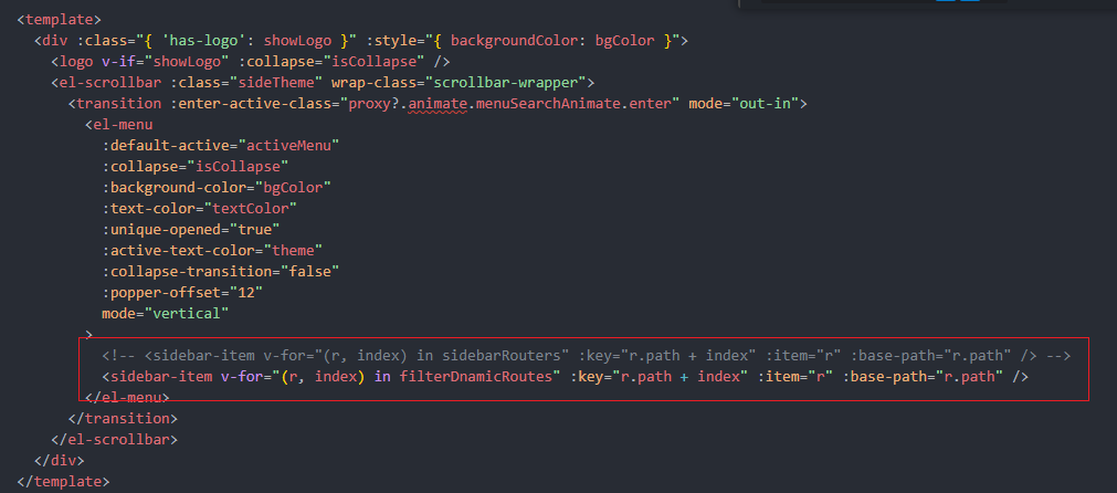 <sidebar-item v-for="(r, index) in filterDnamicRoutes" :key="r.path + index" :item="r" :base-path="r.path" />