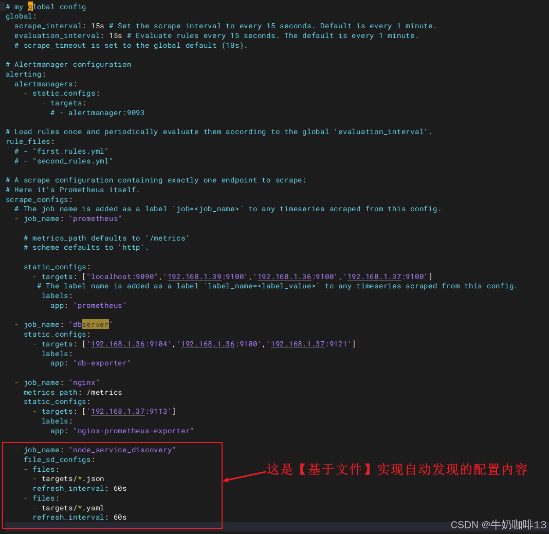 #【prometheus.yml】文件新增的基于文件发现的完整配置如下: