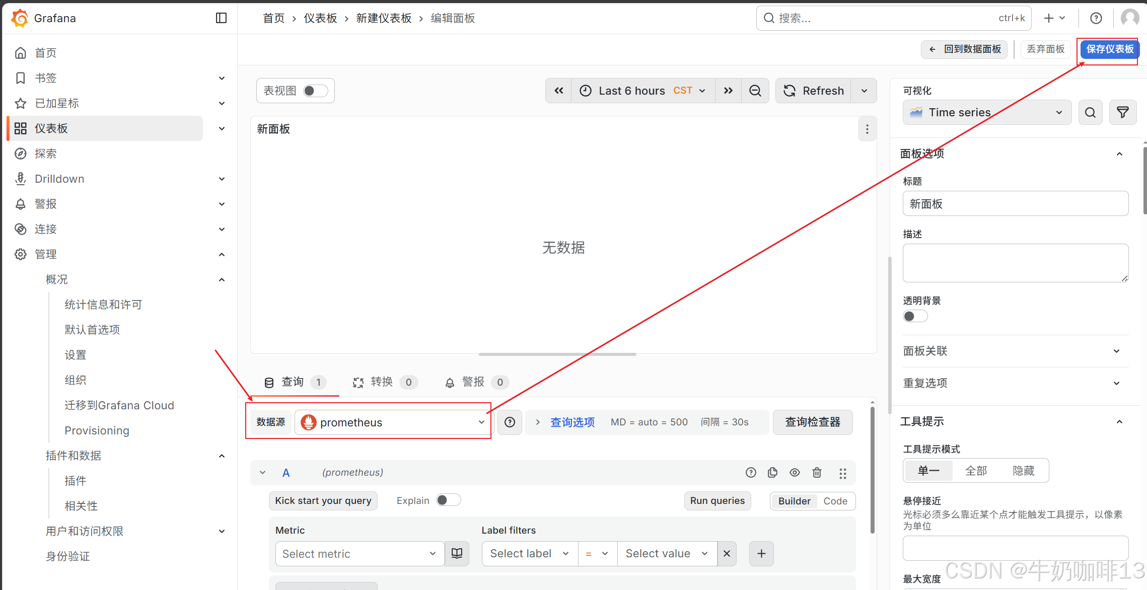 自己制作Grafana中仪表盘(需要自己编写对应的PromQL语句)的步骤如下: