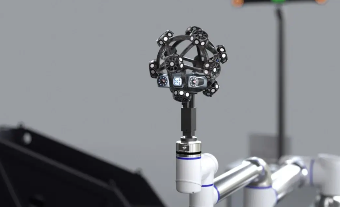 - "摄影测量+跟踪扫描"二合一:独创性地将工业摄影测量系统与光学跟踪器集成于一体。先用摄影测量快速获取遍布工件全局的高精度控制点网络,建立全局坐标系,有效抑制累计误差,保证大尺寸下的超高整体精度。